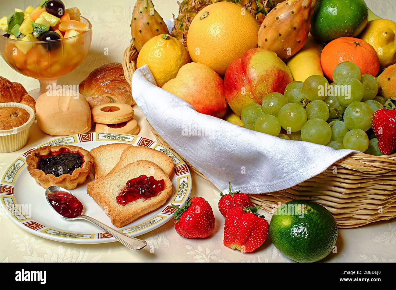 Hotel Tritone Prima Colazione Italian Breakfast Fruit Jam Cappuccino Fruit Juice And Biscuits Stock Photo Alamy