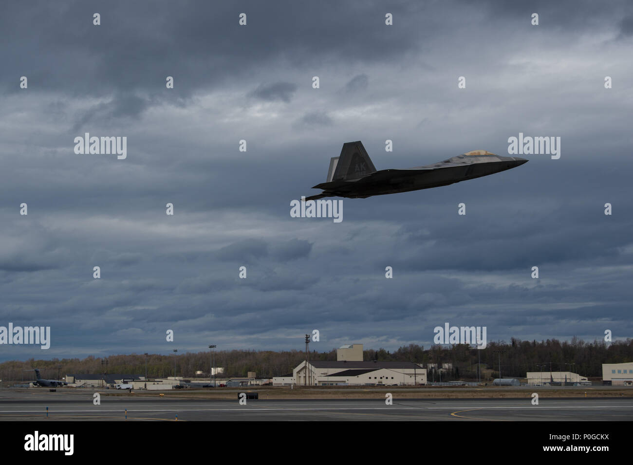 Un F 22 Raptor Prende Il Volo A Base Comune Elmendorf Richardson Alaska 10 Maggio 2018