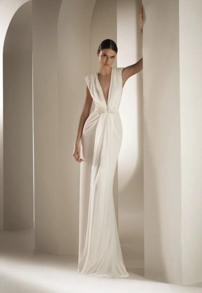 Wedding Dress Out Of Pronovias Blue Moon Silhouette Mermaid Neckline V Neck Floor Without Pronovias Wedding Dress Bridal Gown Trends Wedding Dress Sizes