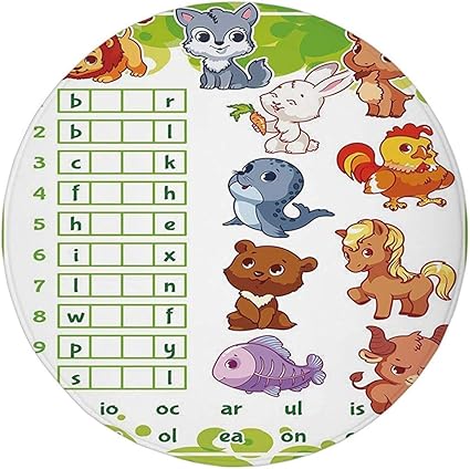 W Wee Tappeto Rotondo Tappeto Tappeto Ricerca Parole Puzzle Gioco Rebus Con Animali Per Bambini In Eta Prescolare Trova Parte Corretta Delle Parole Multicolore Amazon It Casa E Cucina