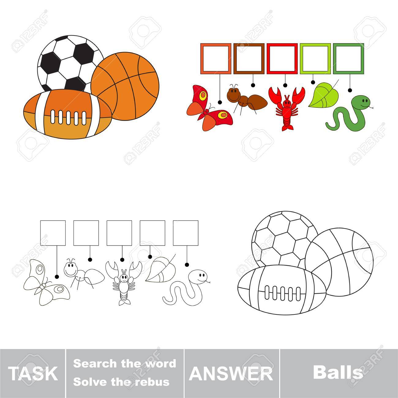 Vettoriale Gioco Vector Rebus Per I Bambini In Eta Prescolare Con Facile Livello Di Gioco Educativo Per L Educazione Bambino Durante Il Gioco Trovare Soluzione E Scrivere La Parola Nascosta In Celle
