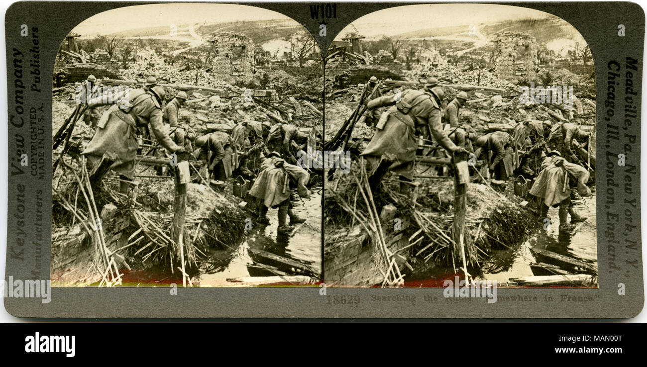 Orizzontale Seppia Stereocard Mostra Uniformata Soldati Francesi Ricerca Attraverso Le Rovine Di Un Villaggio Francese Keystone