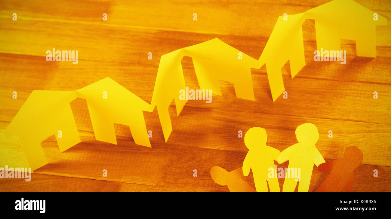 Ritaglio Di Carta Le Figure In Piedi In Cerchio Da Case Di Carta Sul Tavolo Foto Stock Alamy