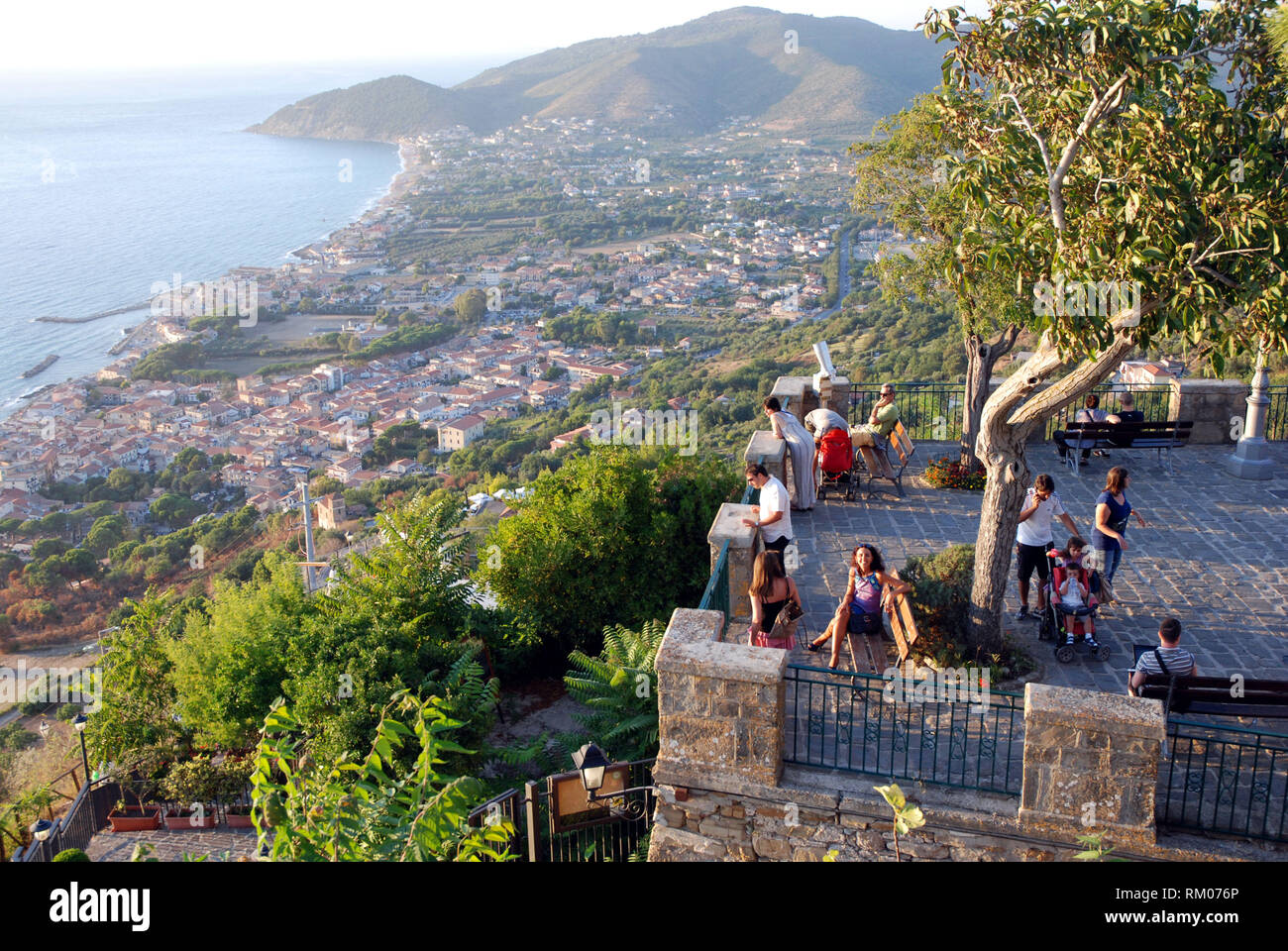 Many People On The Panoramic Terrace Overlooking The Coast Of Santa Maria Di Castellabate Town Cilento Region Salerno Italy 2018 Stock Photo Alamy