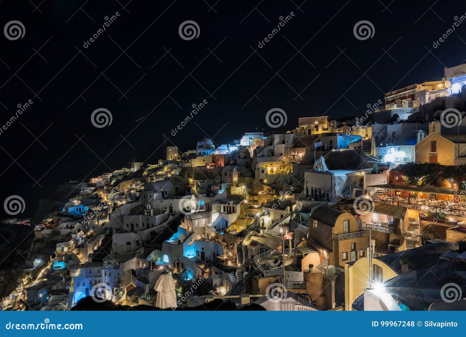 View Of Oia Santorini At Night Stock Photo Image Of Lights City 99967248