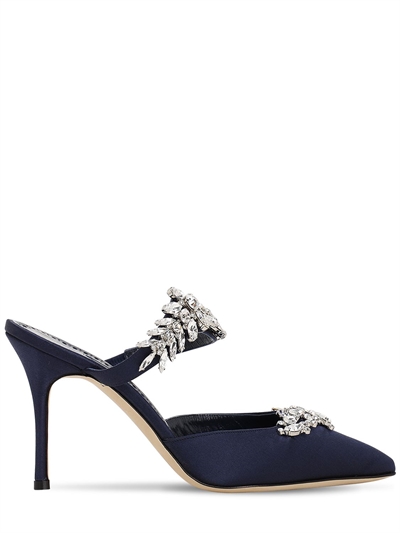 Manolo Blahnik Sabot Lurum In Raso Con Swarovski 90mm Nero Luisaviaroma