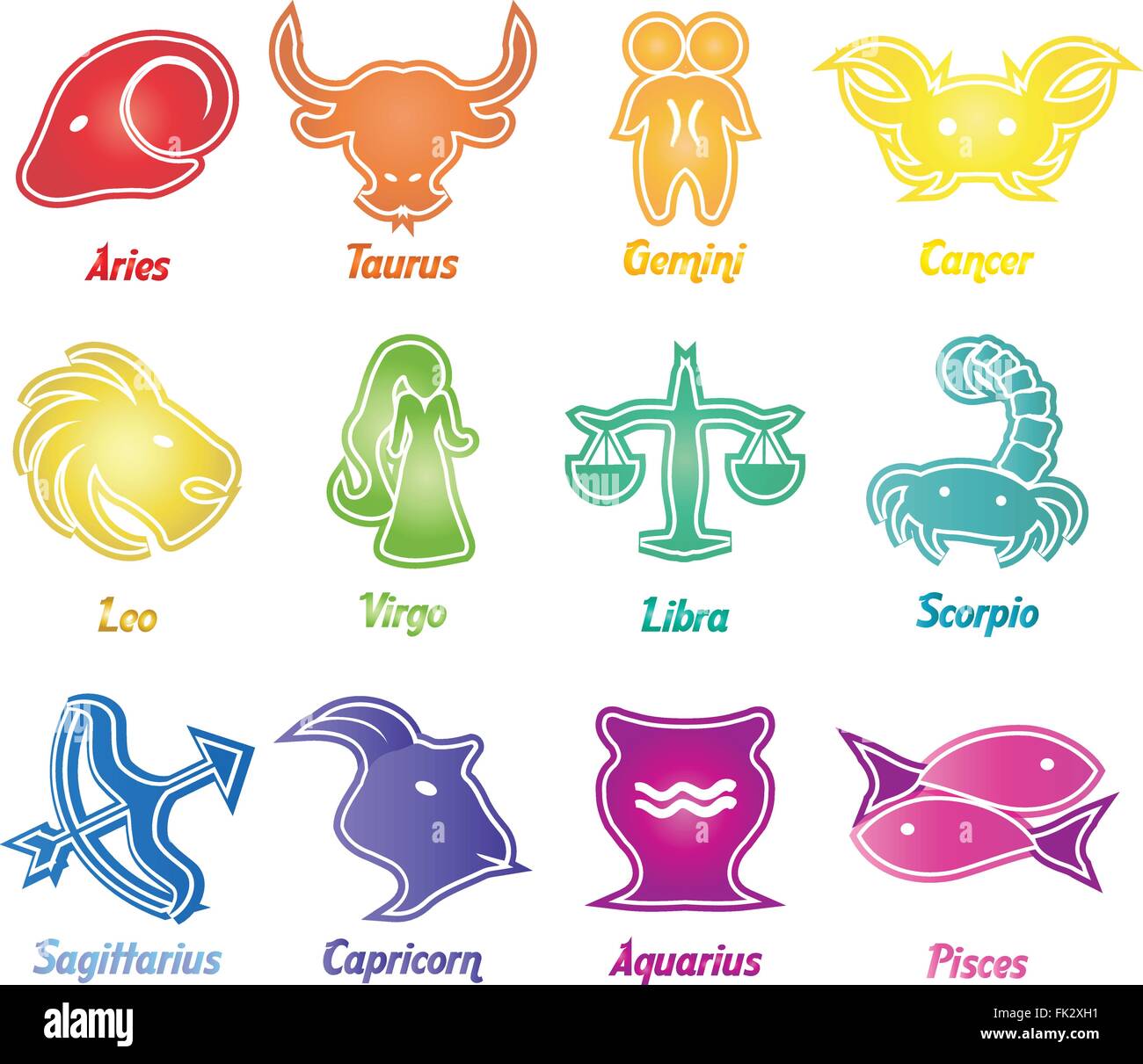 Set Di Astrologica Simboli Dello Zodiaco Oroscopo Segni Moderno Design Colorato Immagine E Vettoriale Alamy