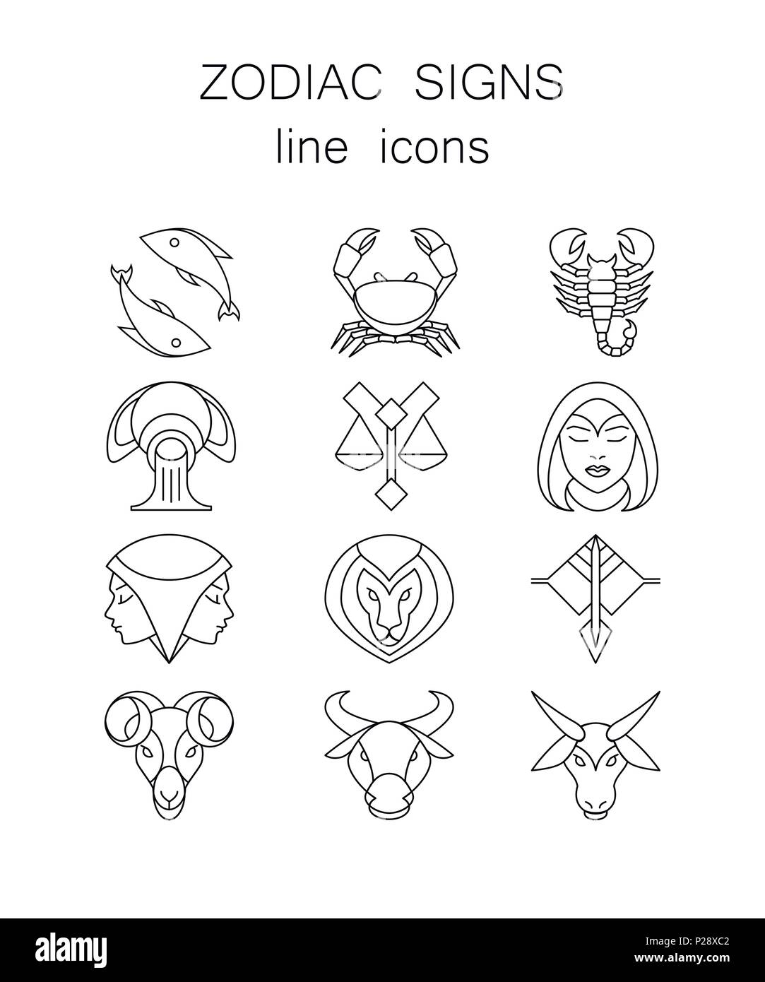 Set Di Icone Di Contorno Dei Segni Zodiacali Simboli Astrologici Vettore Illustrazione Su Sfondo Bianco Immagine E Vettoriale Alamy