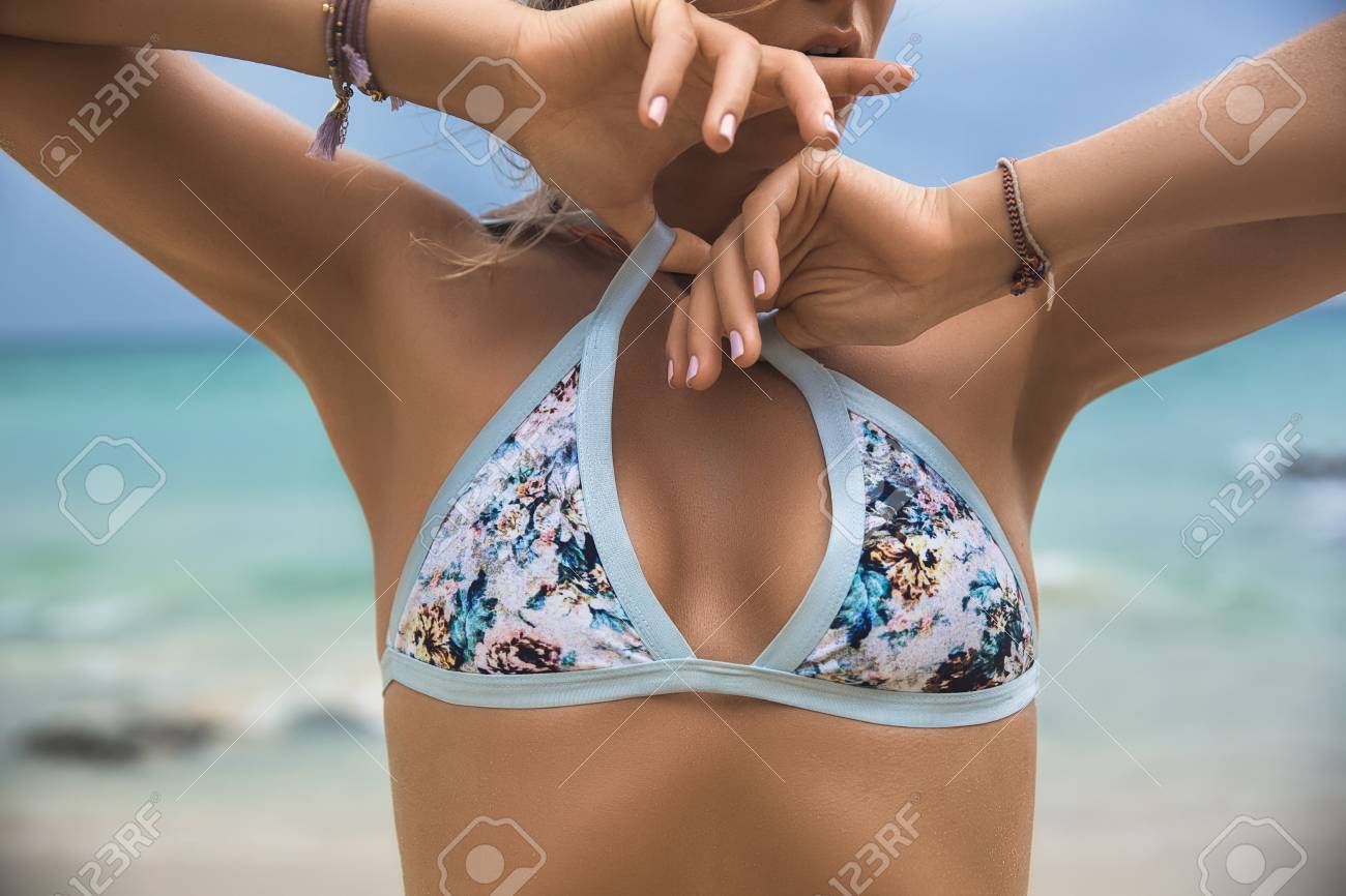 Immagini Stock Chiuda In Su Del Seno Femminile Nel Bikini Sulla Priorita Bassa Del Mare Image 86892297