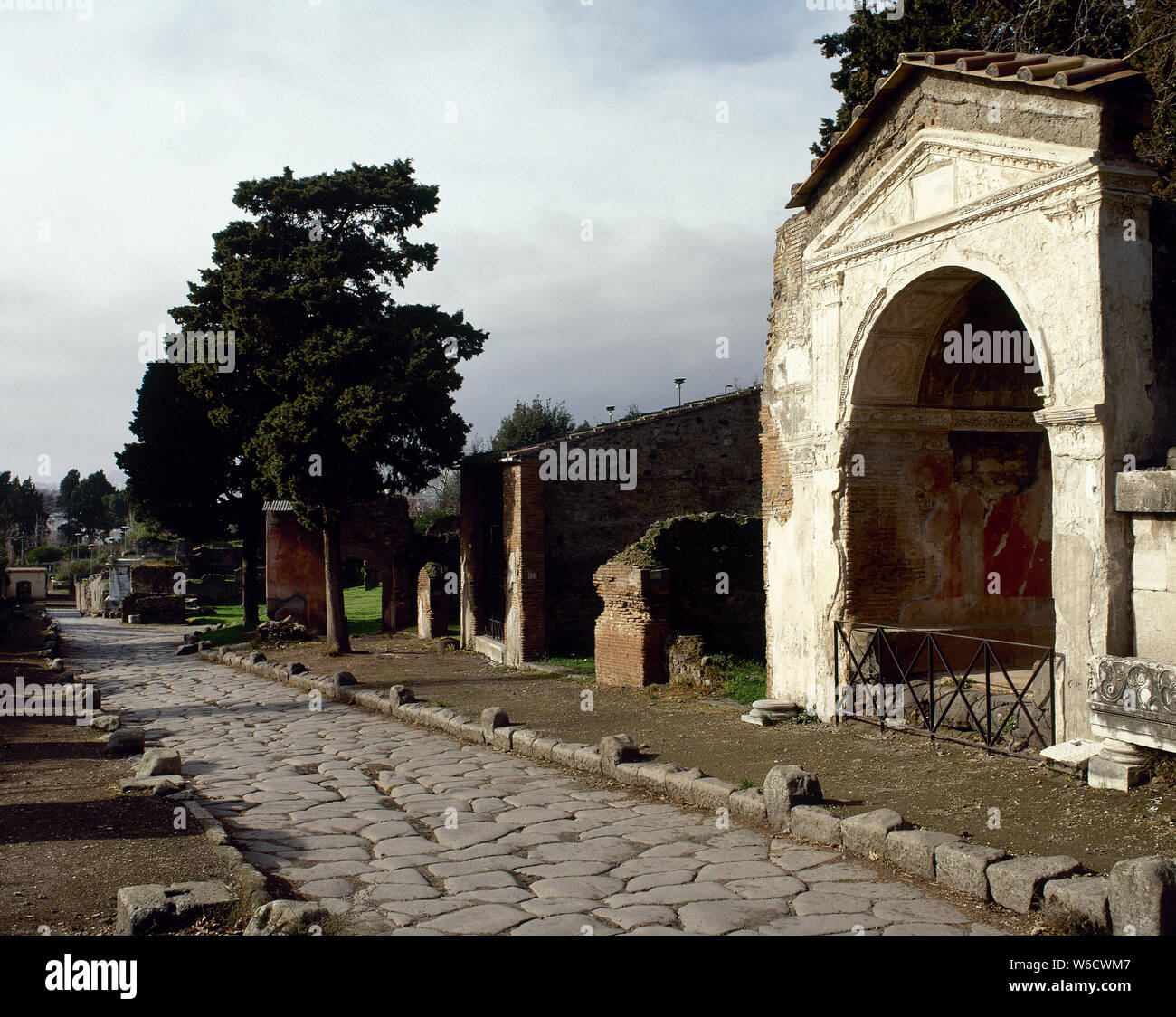Italy Pompeii Street Of Tombs Via Dei Sepolcri There Were Tombs Commercial Buildings And Villas On Both Sides Of The Road It Was A Large And Important Cemetery Area La Campania Stock
