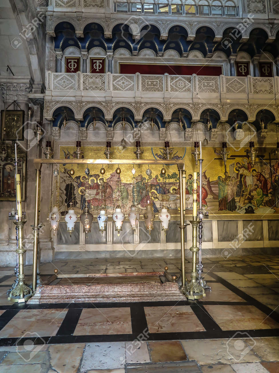 Immagini Stock Pietra Dell Unzione Di Gesu Nel Santo Sepolcro Il Luogo Piu Sacro Dei Cristiani Gerusalemme Israele Image 43112314