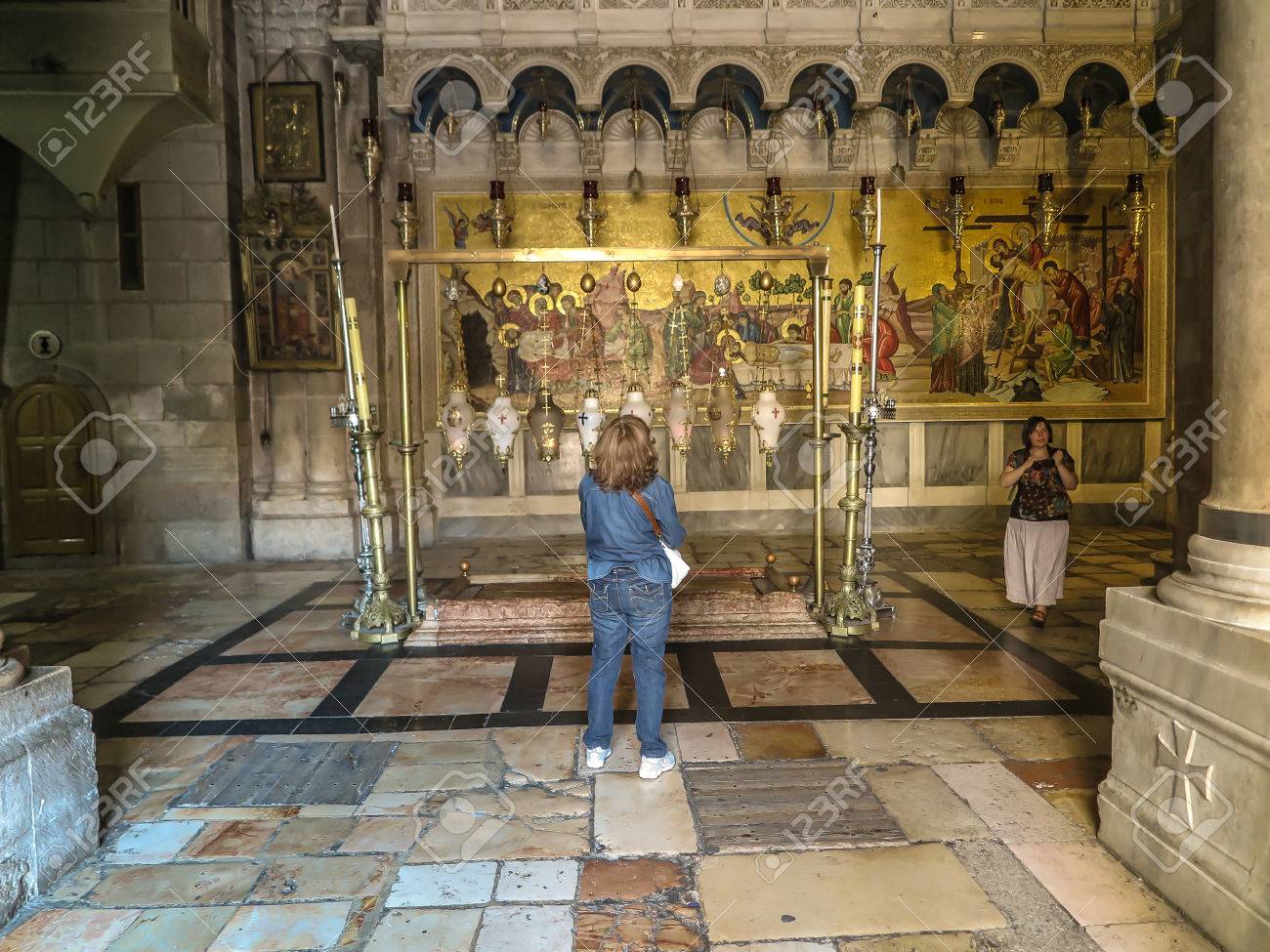 Immagini Stock Pietra Dell Unzione Di Gesu Nel Santo Sepolcro Il Luogo Piu Sacro Dei Cristiani Gerusalemme Israele Image 43112315