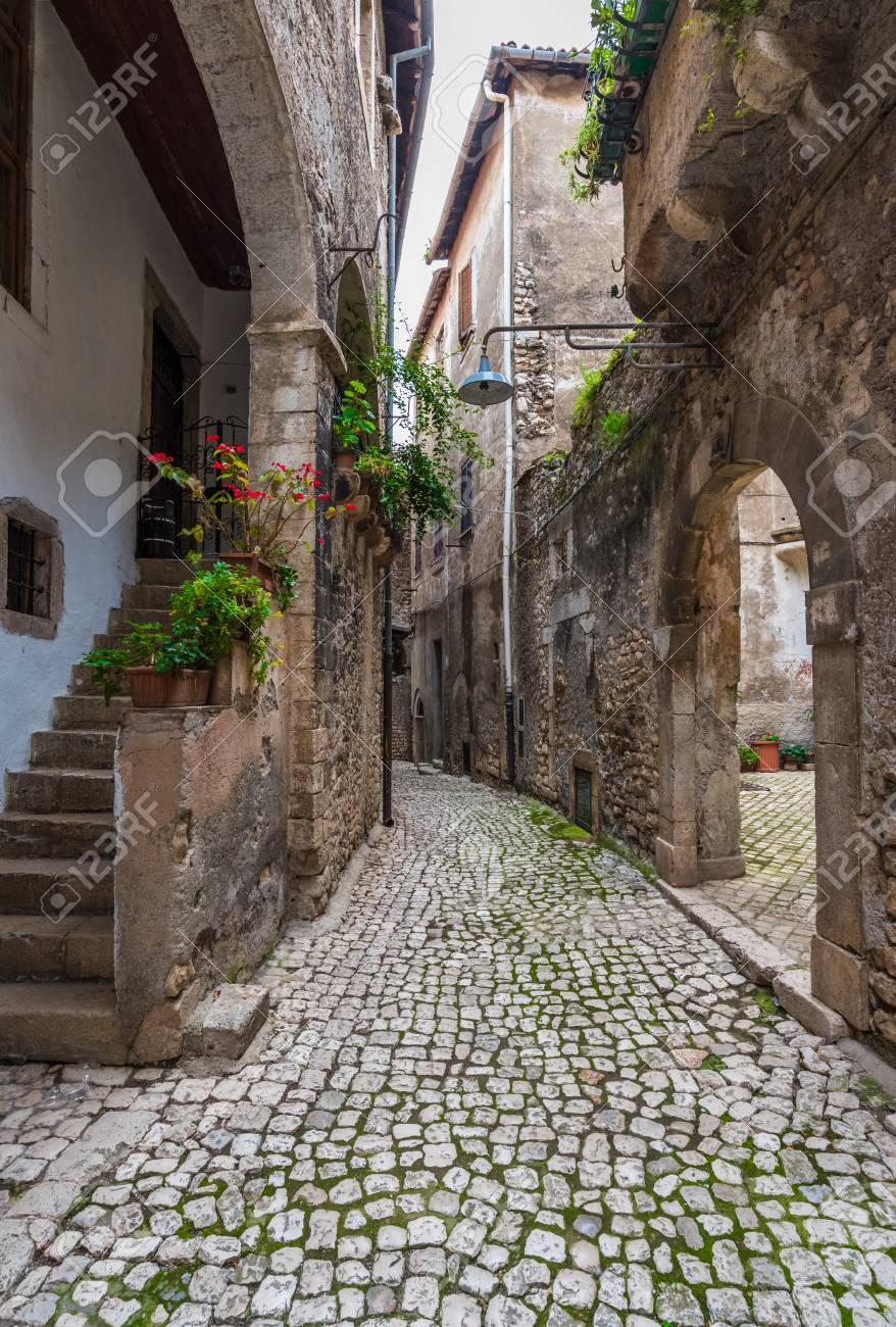 Scenic Sight In Sermoneta Medieval Village In Latina Province Italy Stock Photo Image Of Antique Golden 106629338