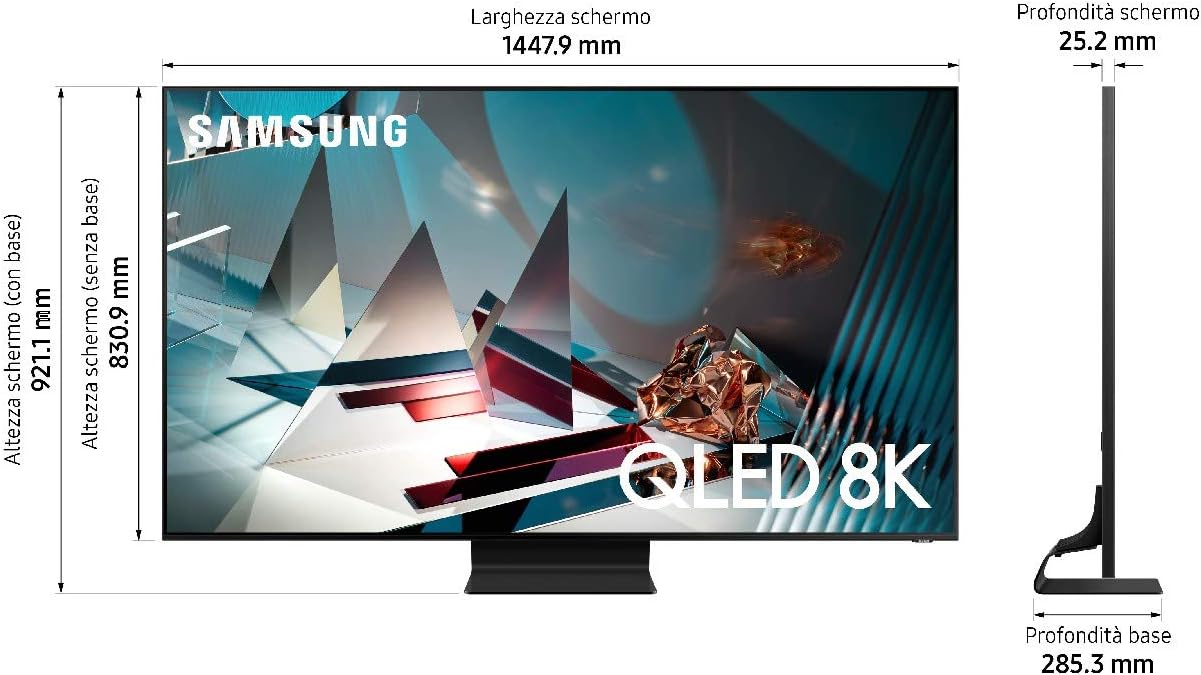 Samsung Q800t Smart Tv 65 Qled 8k Wi Fi 2020 Silver Classe Di Efficienza Energetica D Amazon It Elettronica