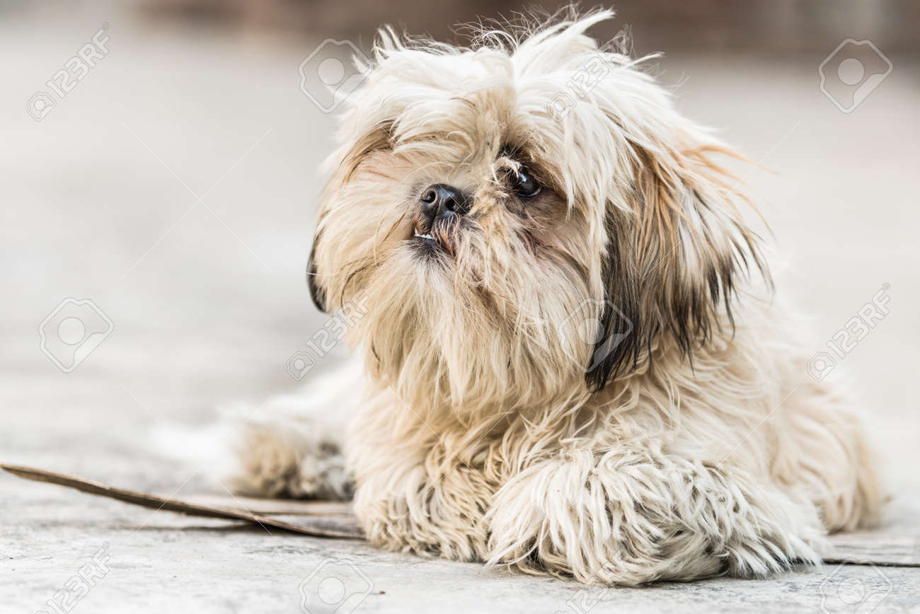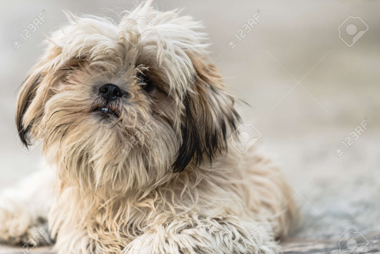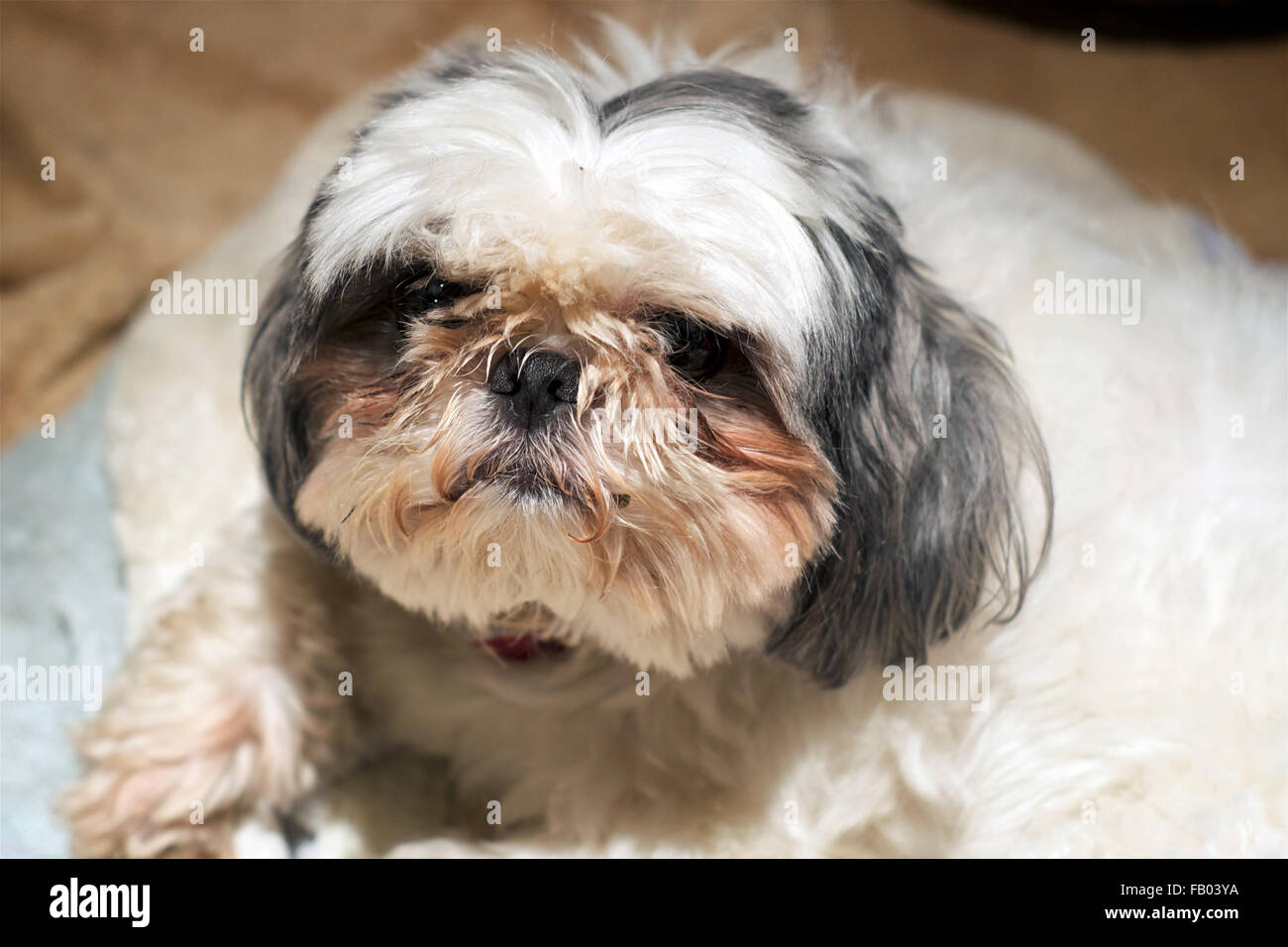 Un Piccolo Shih Tzu Cane Con Una Faccia Sporca E Guardando Il Visualizzatore Foto Stock Alamy