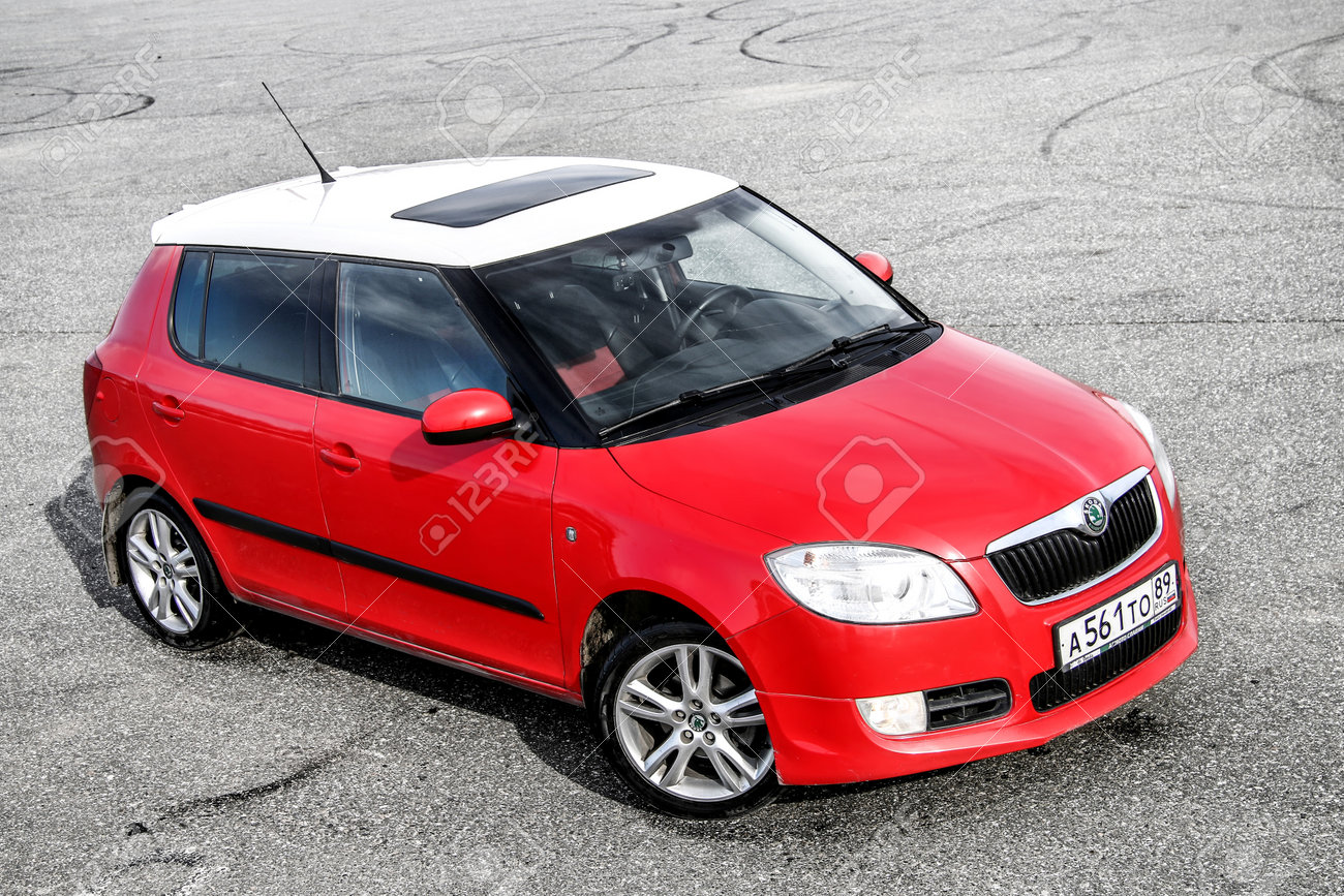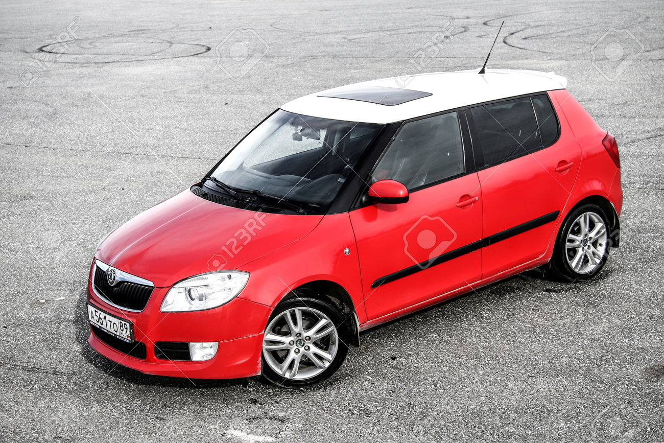 Immagini Stock Novyy Urengoy Russia 13 Maggio 2016 Automobile Compatta Rossa Luminosa Skoda Fabia Della Citta Nella Via Della Citta Image 56927524
