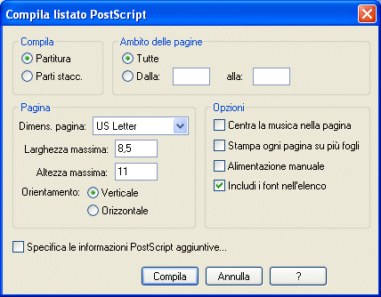 Compila Il Listato Postscript Finestra Di Dialogo