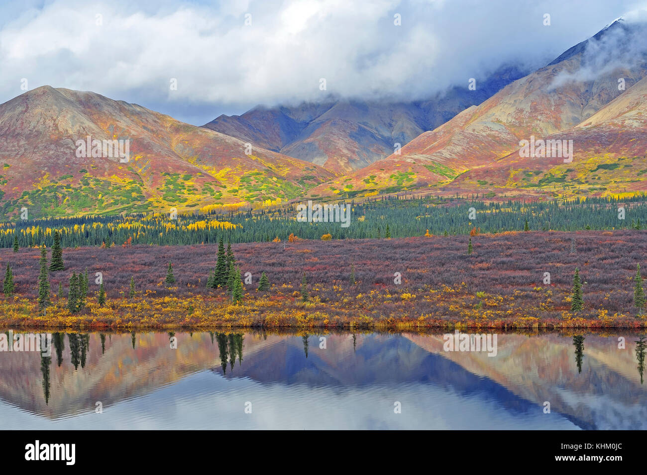 Colorato Paesaggio Autunnale Mountain Tundra E Taiga Lago Con Riflessione Denali State Park Alaska Stati Uniti D America Foto Stock Alamy