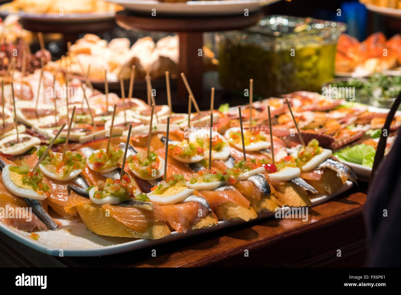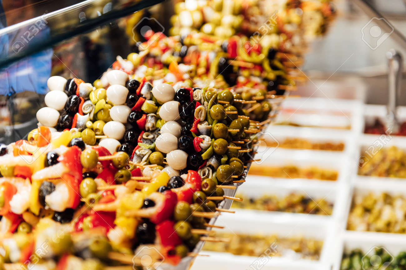 Immagini Stock Luxurious Selection Of Tapas Traditional Small Portion Snacks In Spain In San Miguel Tapas Bar Image 136732025