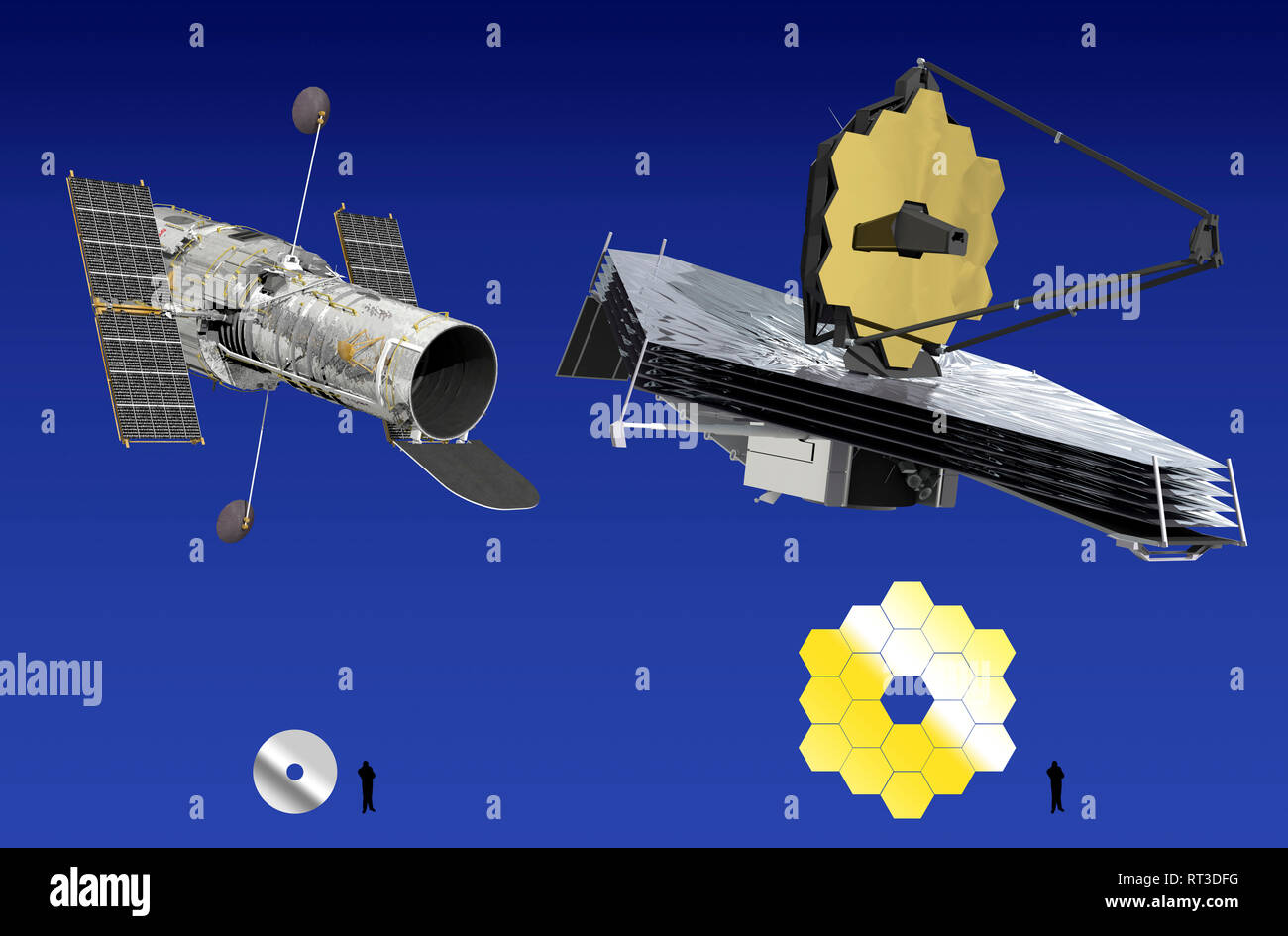 Telescopio Spaziale Hubble E James Webb Space Telescope Il Confronto Delle Dimensioni Foto Stock Alamy