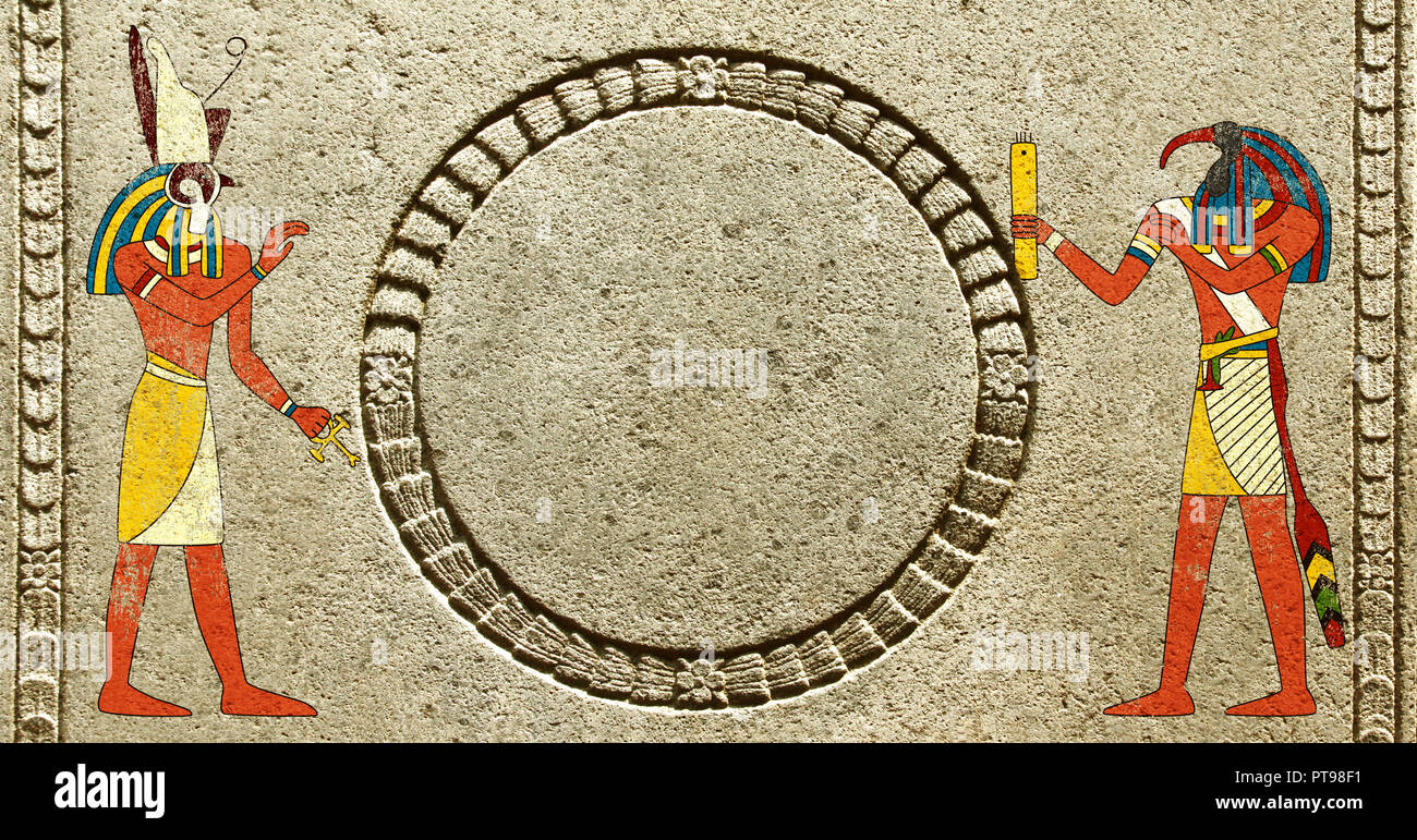 Grunge Sfondo Con Divinita Egiziane Immagini Toth E Horus E Antica Pietra Texture Mock Up Modello Copia Spazio Per Il Testo Foto Stock Alamy