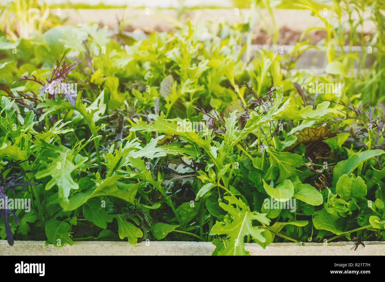 Vari Tipi Di Insalate Lattughe Insalata Insalata Verde Con La Senape Nel Giardino Della Citta Di Orto Foto Stock Alamy