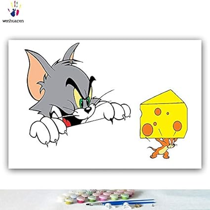 Kykdy Colorare Fai Da Te Immagini Con Numeri Con Colori Tom Cat E Jerry Mouse Tom E Jerry Dipingere Disegni Con Numeri Incorniciati 8116 80x100 Senza Cornice Amazon It Casa E Cucina
