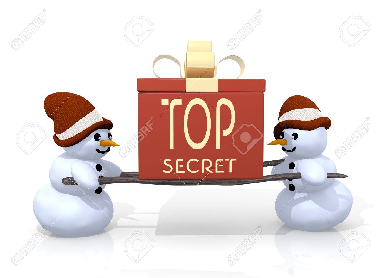 Immagini Stock Un 3d Regalo Reso Con Un Segno Top Secret Stampata Su Di Essa E Effettuata Da Due Simpatico Pupazzo Di Neve Isolato Su Sfondo Bianco Image 33343601