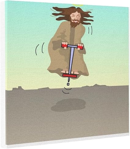 Sconosciuto Astratto Tela Gesu Che Salta Su Un Pogo Stick Tela Trasferimento Pogo Amazon It Casa E Cucina
