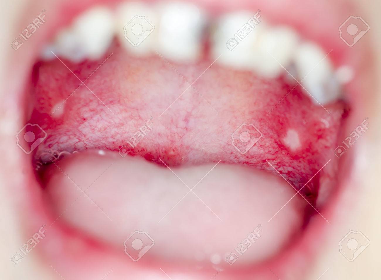Immagini Stock Infezione Di Ulcere Nella Bocca Macro Vicino E Profondita Di Campo Dof Effetto In Bocca Aperta Image 66962708