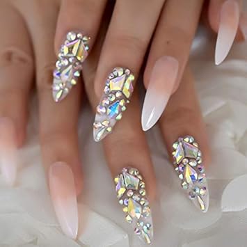 Plzjmm Unghie Finte Unghia Con Grosse Pietre Decorate A Forma Di Abilita Artistica Stampata Su Unghie Naturali Amazon It Bellezza
