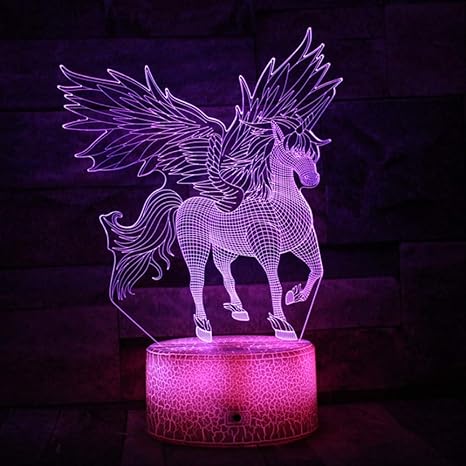 Rszhhl Luce Notturna 3d Unicorno Alato 3d 7 Colori Lampade Da Notte A Led Per Bambini Touch Led Da Tavolo Usb Lampara Lampe Baby Sleeping Nightlight Remote E Touch Blue Amazon It Illuminazione