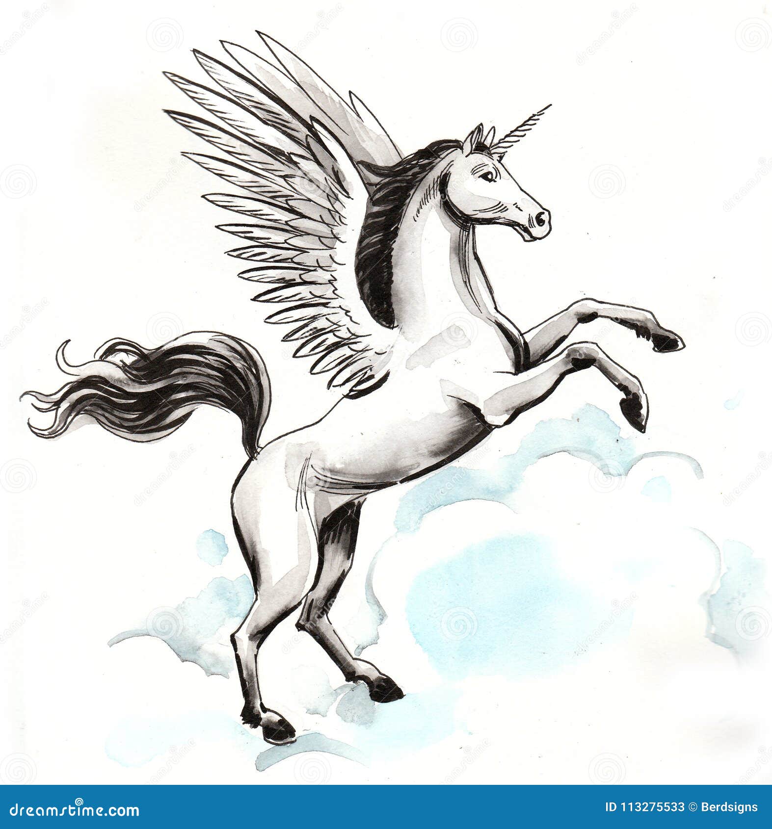 Alato Disegnato Mano Unicorno Tatuaggio Stile Magia Volare Isolato Illustrazione Tutto Vettore White Unicorno Canstock