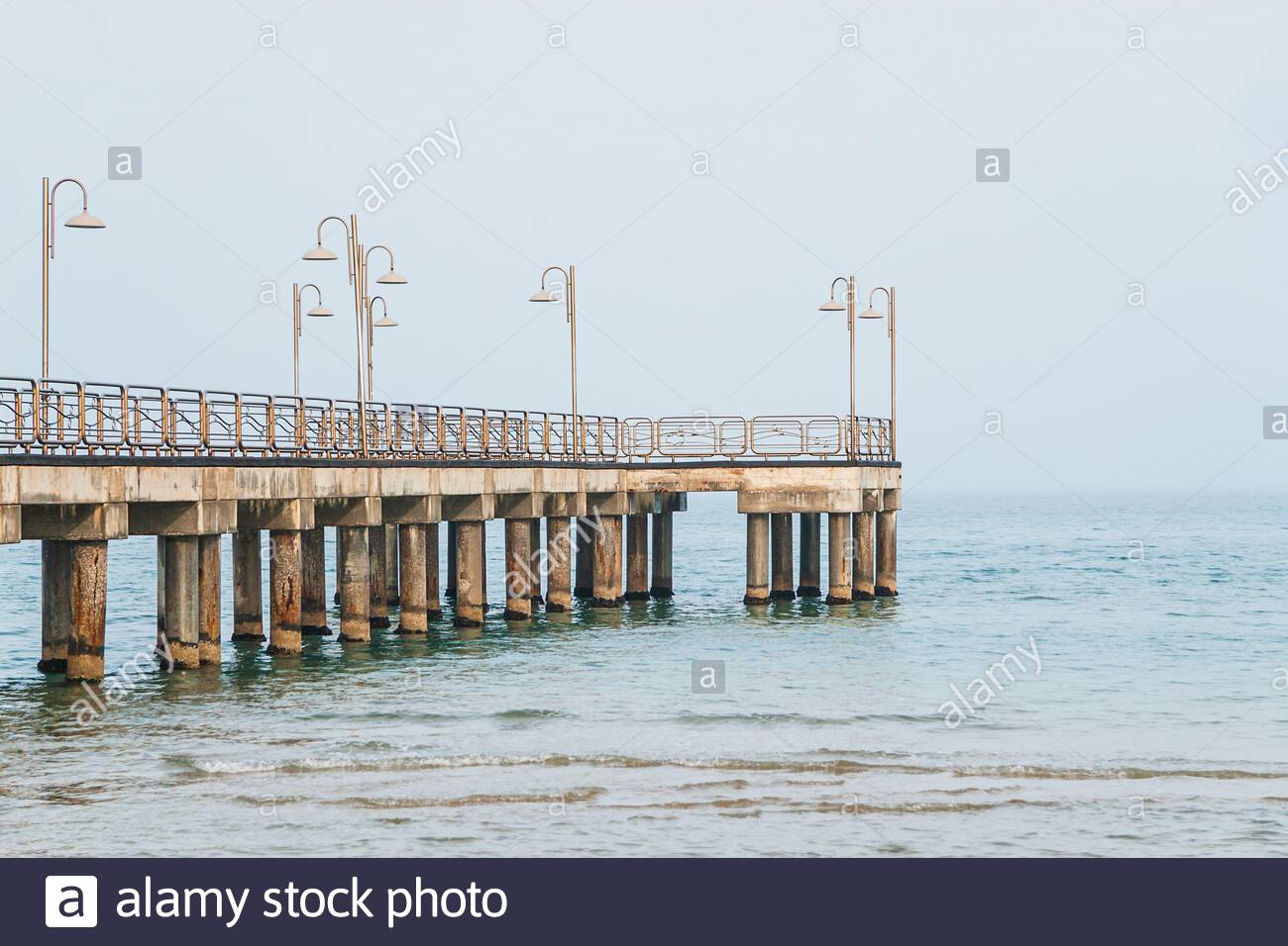 Vasto Marina Italy A Wooden Pier On Pillars With Lights Extending From The Shore Out Into The Adriatic Sea Winter Seascape On A Foggy Afternoon Stock Photo Alamy