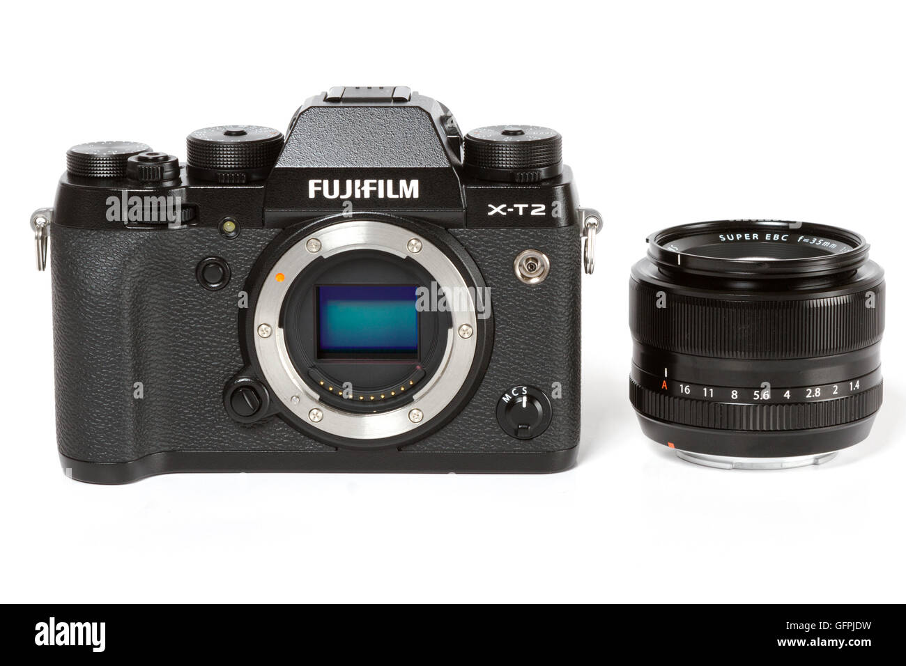 Fujifilm X T2 24 Megapixel 4k Video Fotocamera Mirrorless Con Sensore Visibile F 35mm 1 4 Lente Fissa Su Sfondo Bianco Foto Stock Alamy