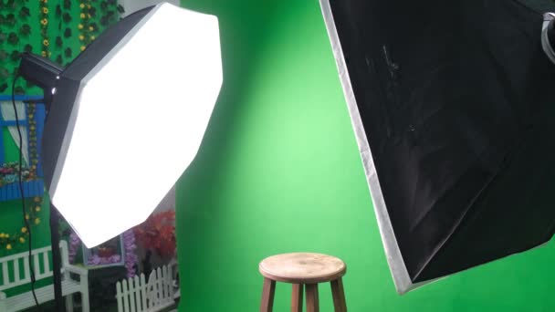 Studio Fotografico O Video Con Due Luci Da Studio Esagono Schermo Verde E Sedia Fissa Filmati Video Stock C Nailahmedov 425866726 Depositphotos