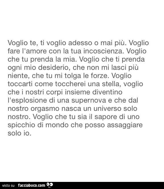 Voglio Te Ti Voglio Adesso O Mai Piu Voglio Fare L Amore Con La Tua Incoscienza Facciabuco Com