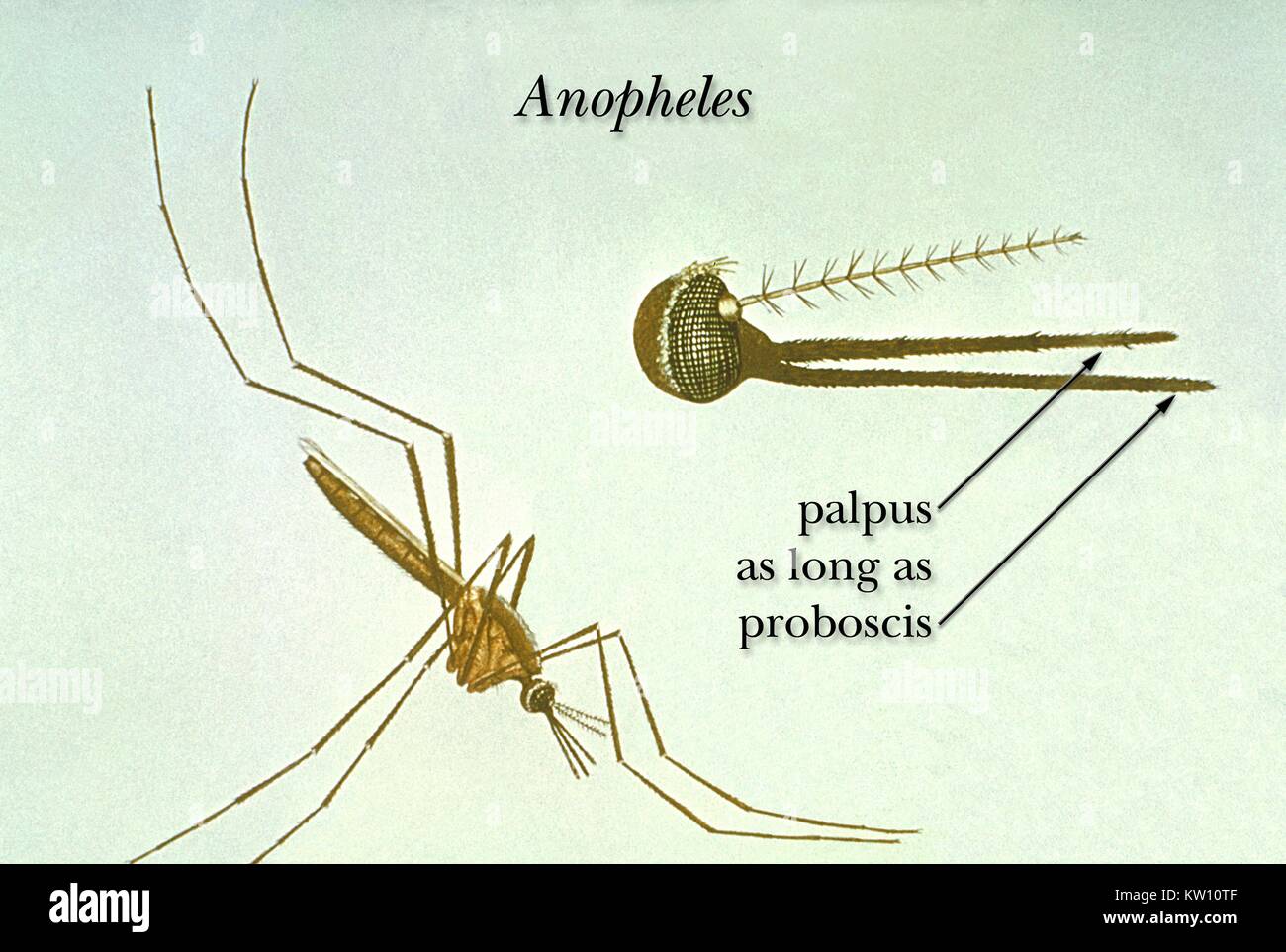 Illustrazione Di Una Zanzara Anofele Alcune Specie Di Zanzara Anofele Possono Trasmettere La Malaria Nota La Lunga Palpi Che Sono Circa Lunga Come La Proboscide Immagine Cortesia Cdc 1985 Foto Stock Alamy