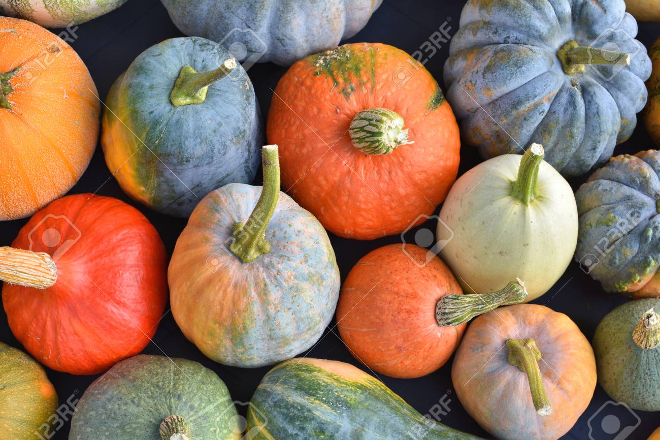 Diversi Tipi Di Zucca Varieta Di Zucca Zucche Colorate Halloween Foto Stock Alamy